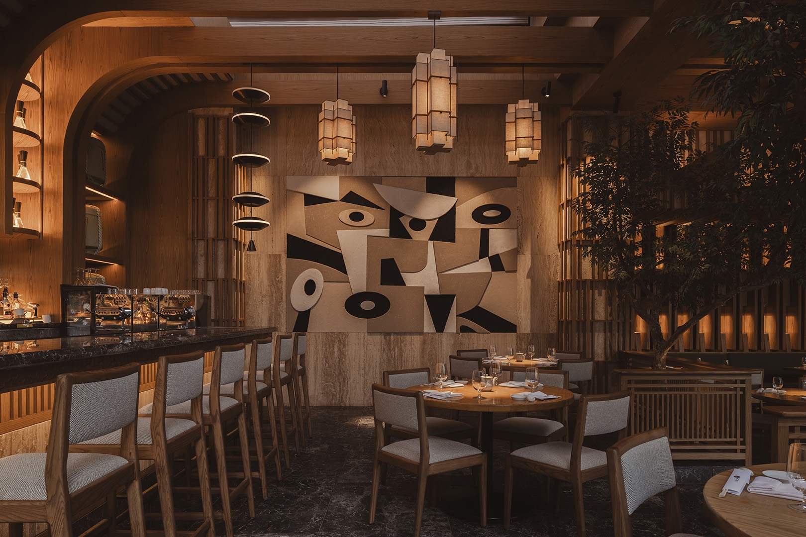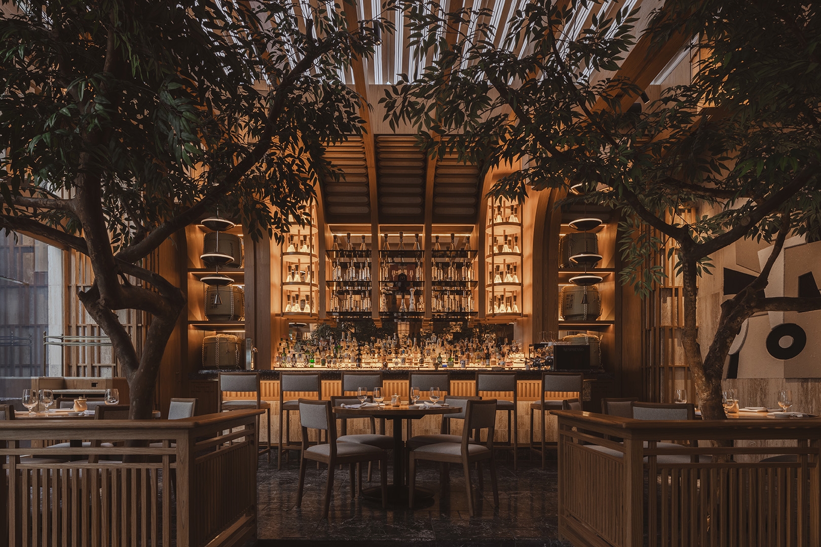 The renovation project of Nobu's terrace represented a significant change and transition. The remodel aimed not only to transform the space but also to create something new and different. Through a careful selection of furniture, art, lighting, and finishes, a fresh and modern image was achieved. The impressive bar and dazzling lighting fixtures stand out in the design, fulfilling the goal of offering a renewed and unique experience.